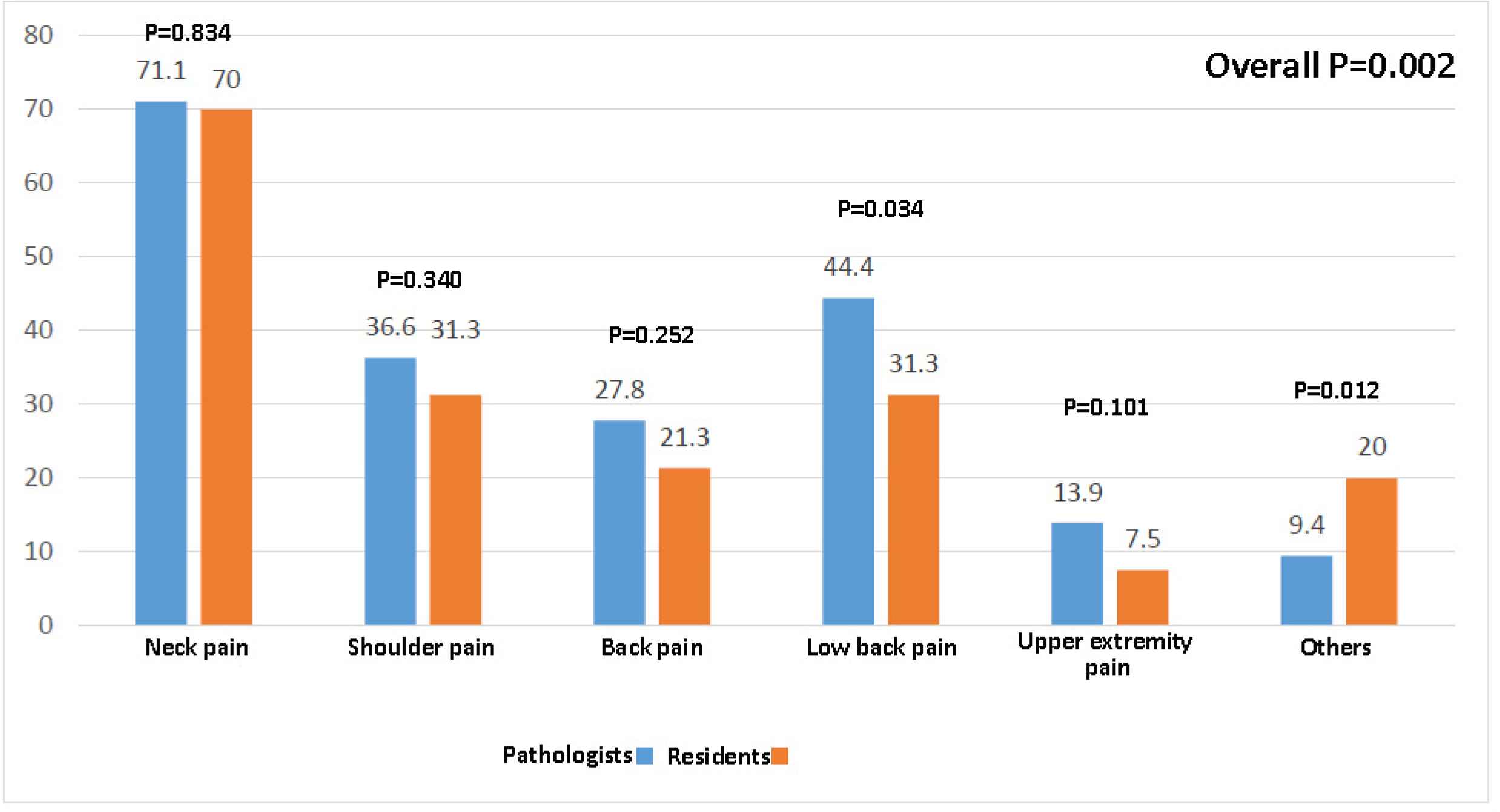 Fig. 1.Comparison of musculoskeletal pain experience among the pathologists and residents