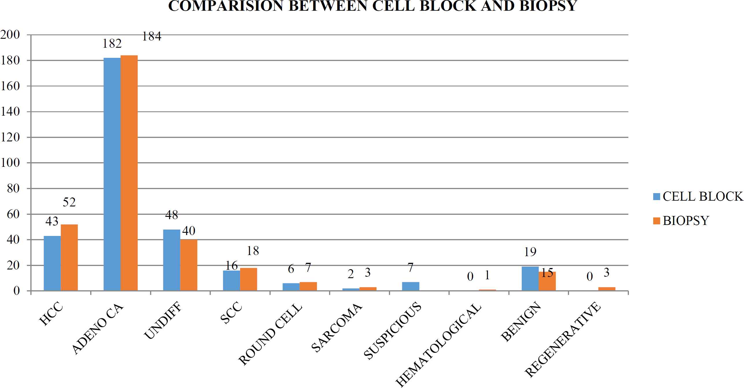 Fig. 4.Comparison of the cell block results with the biopsy results