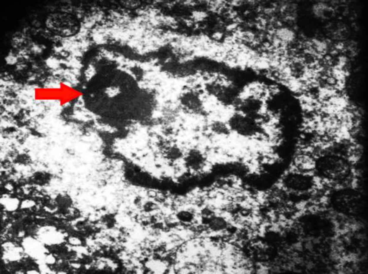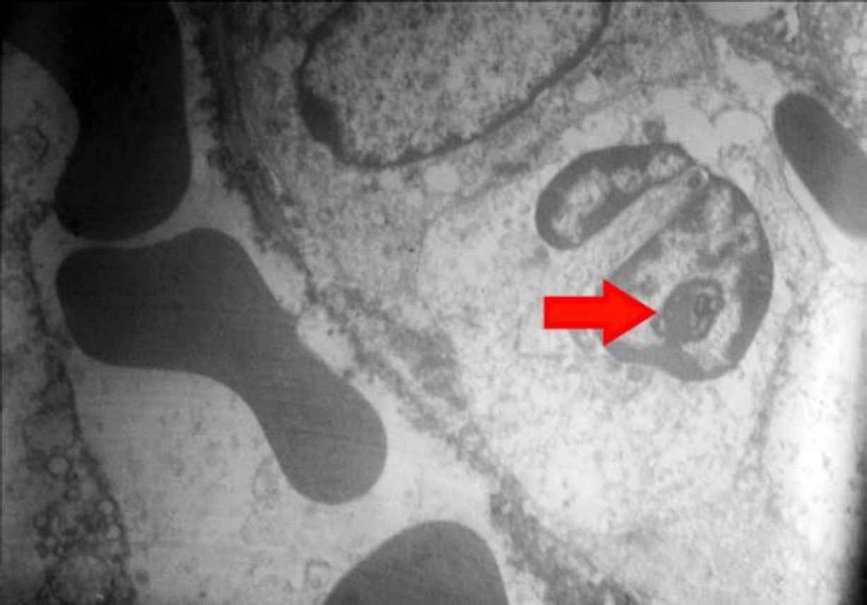 Fig. 5.Electron microscopy showed the presence of nucleolus in the nucleus of neutrophil; (Original magnification ×5,000). (Courtesy of Mr. Majid Asadi PhD, Kerman University)