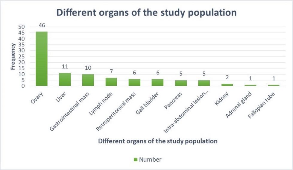 Fig. 2. Distribution of cases according to different organs involved in the study population
