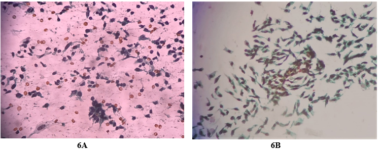 In present study a correct diagnosis was achieved in all 100 cases. The quality of MUFP staining was evaluated on four parameters namely smear background, overall staining pattern, cell morphology, and nuclear characteristics. The quality index score was better in MUFP stain as compared to routine PAP stain and these findings were similar to studies conducted by Alwahibi et al. (25) and Sinkar et al. (26).